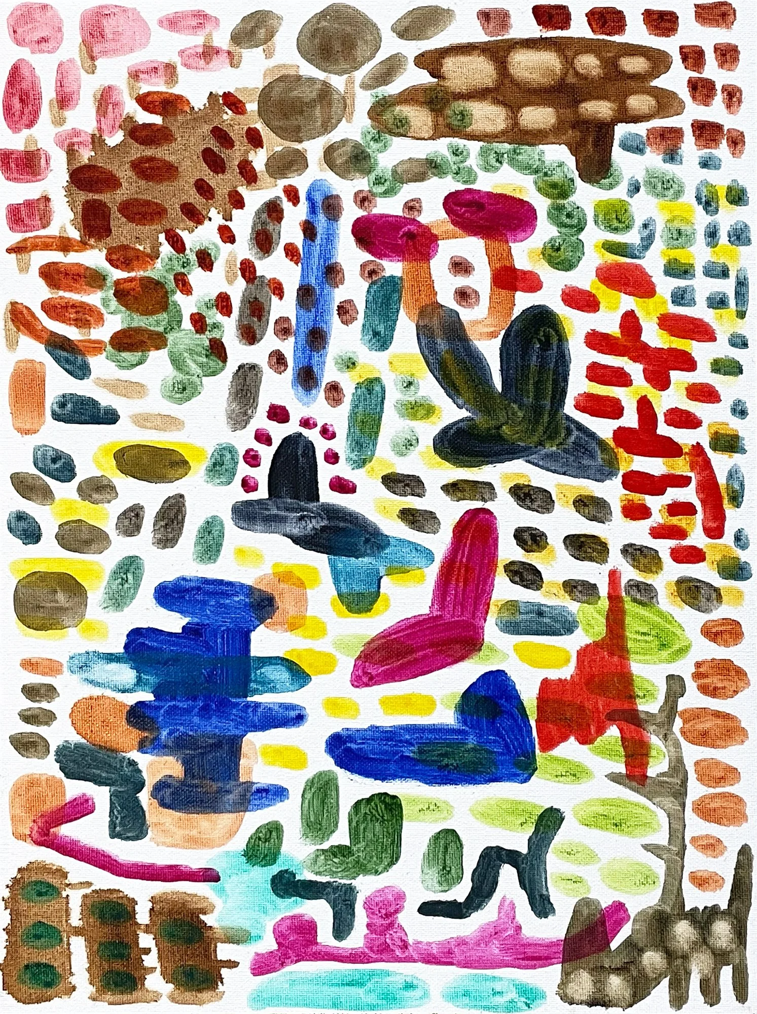New paintings, January 2024–present. Acrylic, gouache and oil on canvas